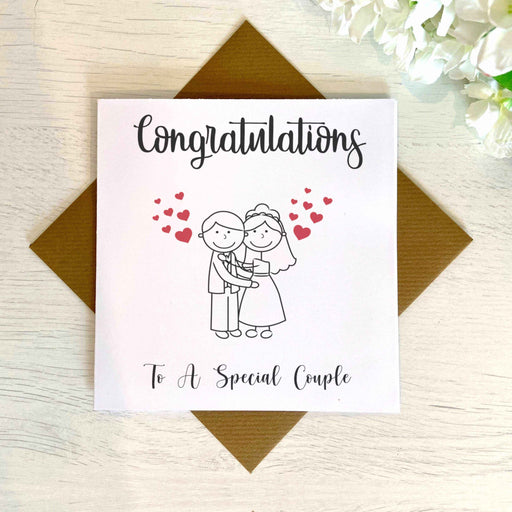 This congratulations to a special couple wedding card is the perfect way to wish the happy couple a wonderful day on their big day! The cute cartoon drawing of a happy couple, with lots of love hearts, is perfect for a wedding card, and...- £3.39