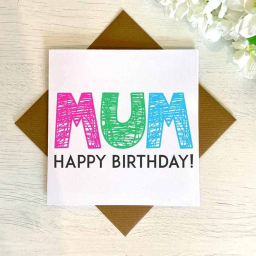 Mum Happy Birthday in a scribble design, simple yet effective.- £3.39