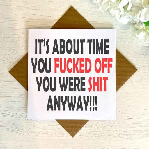 Say farewell to your colleague with a touch of humour. This "Off You Fuck Then" card will leave them laughing and send them off on their next adventure with a smile. Perfect for any job departure!- £3.39