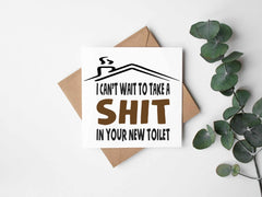 Let them know you are happy for them too, and you will leave them with their own house warming gift, a shit in their new toilet! Even better, let them know exactly what you are thinking by getting them this new home card, it is sure to put a smile on their face.