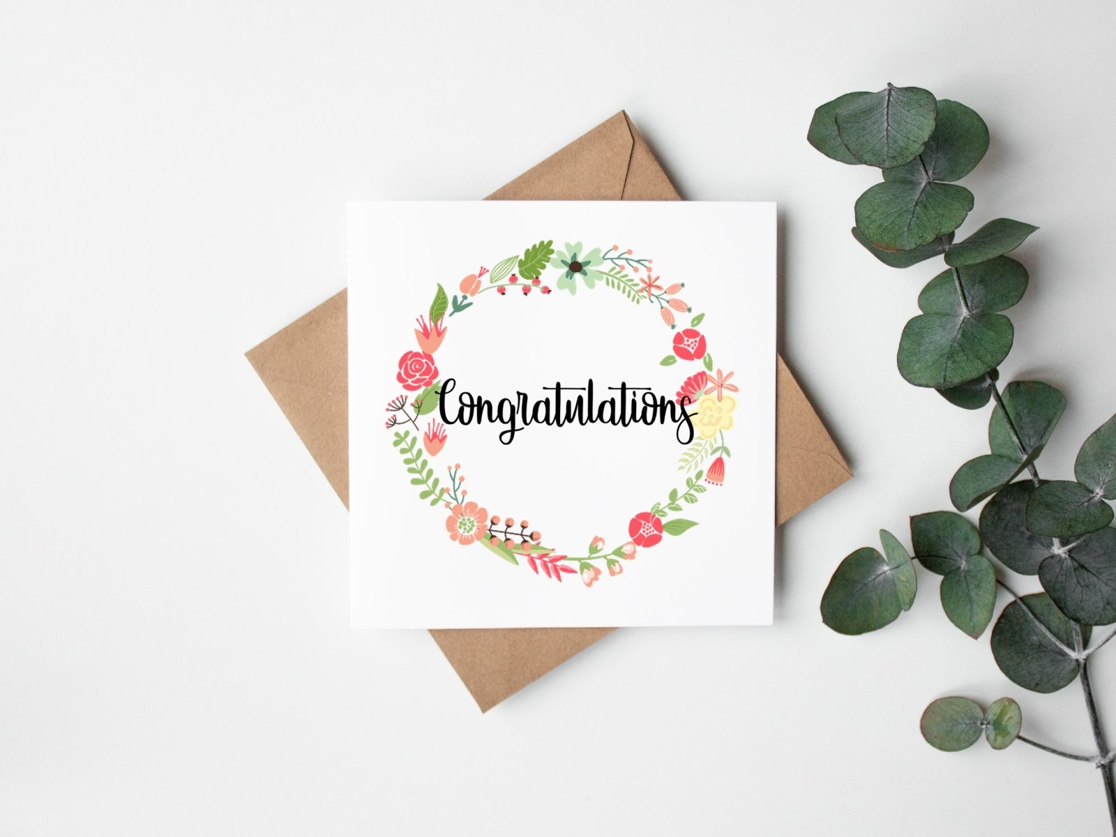 Congratulations Floral Wreath Greetings Card