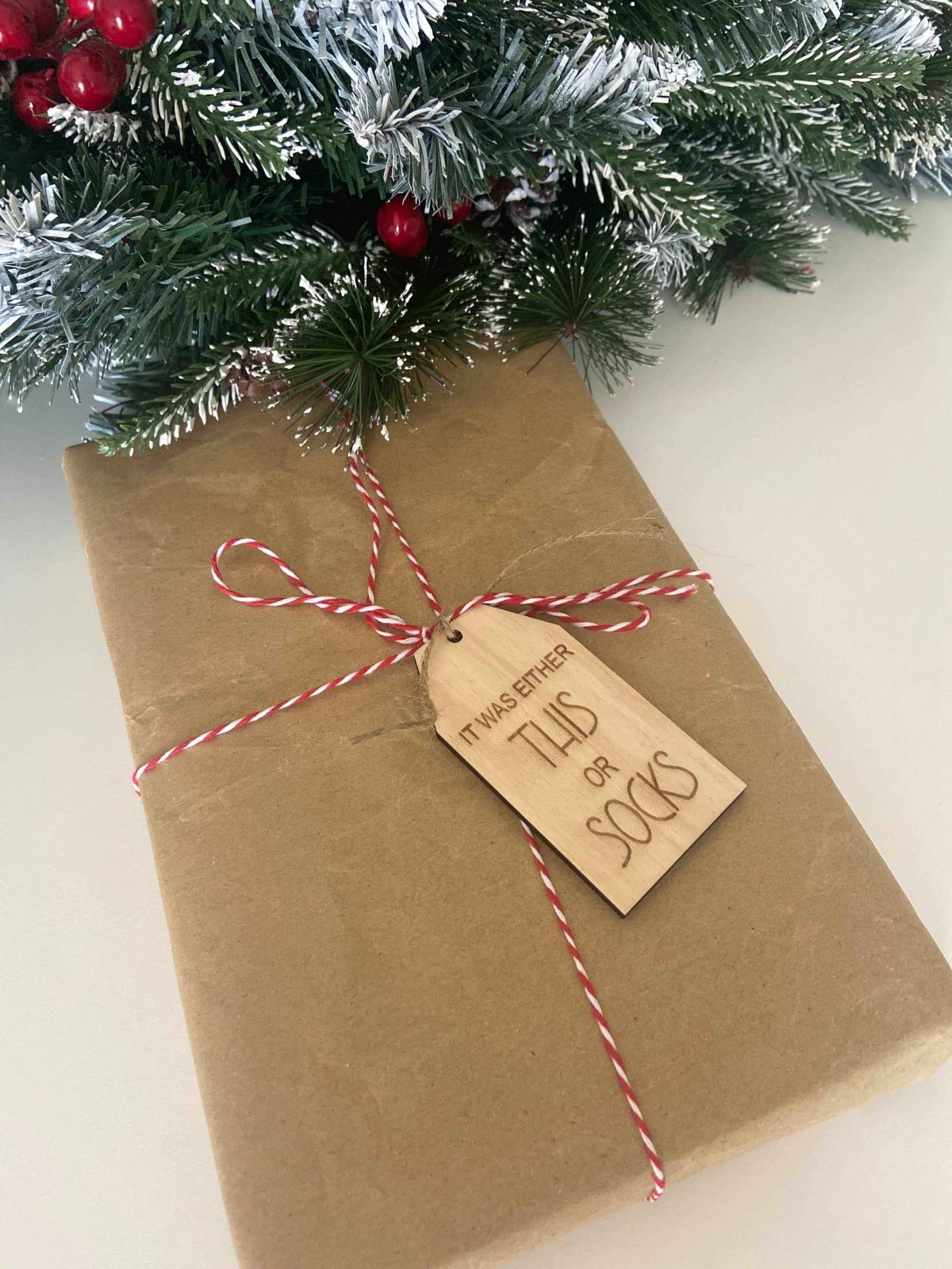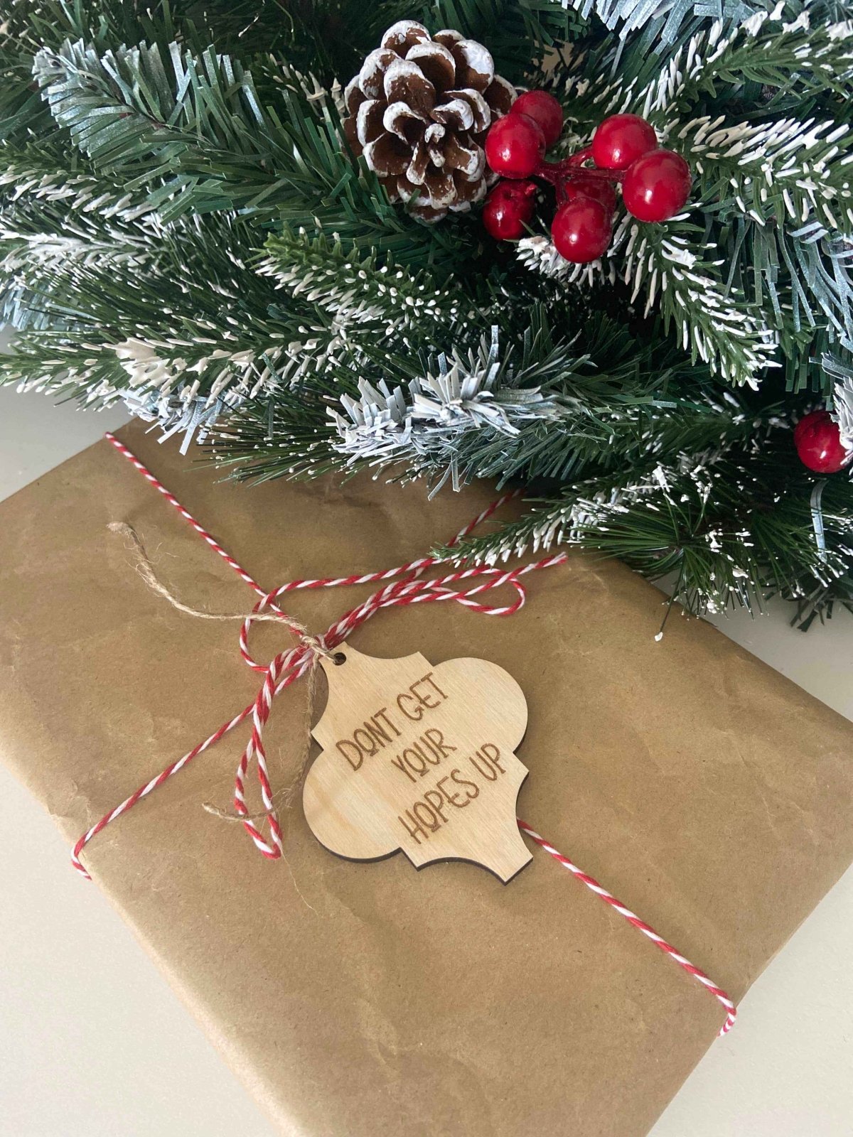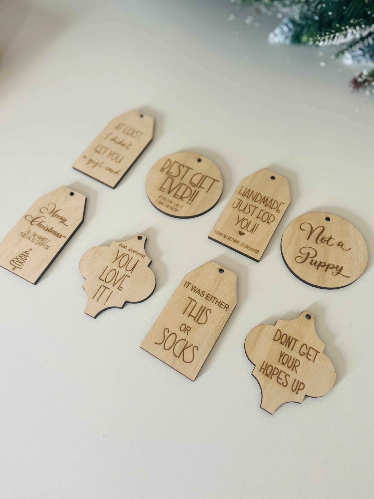 A set of laser cut reusable Christmas gift tags. This set contains 8 gift tags with some great one liners to make your gifts something different this Christmas: