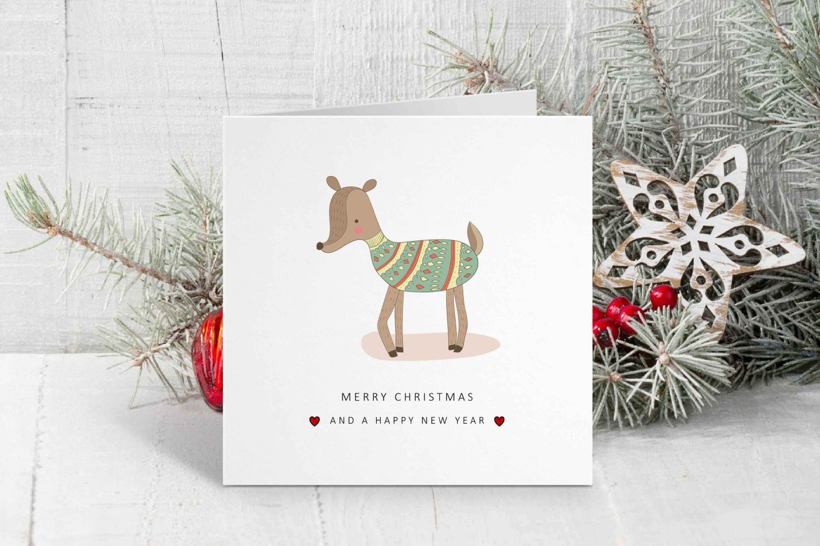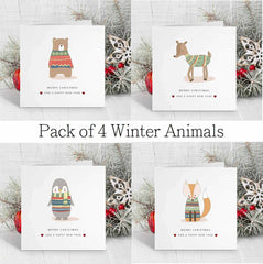 This holiday season, spread some cheer with this unique set of four Christmas cards featuring festive woodland animals!