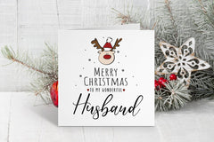 Wish your special someone a merry Christmas with this fun and festive "Merry Christmas Husband - Reindeer Christmas Card"!