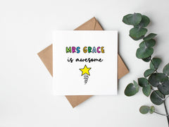 Say thank you to your child's teacher with this personalised thank you teacher card. This card can be personalised with the teachers name making it that little bit more special.